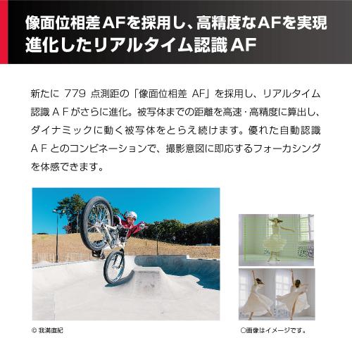 | 連続撮影速度 | 最高約9コマ/秒(メカシャッター/電子先幕時)、最高約30コマ/秒(電子シャッター時) |